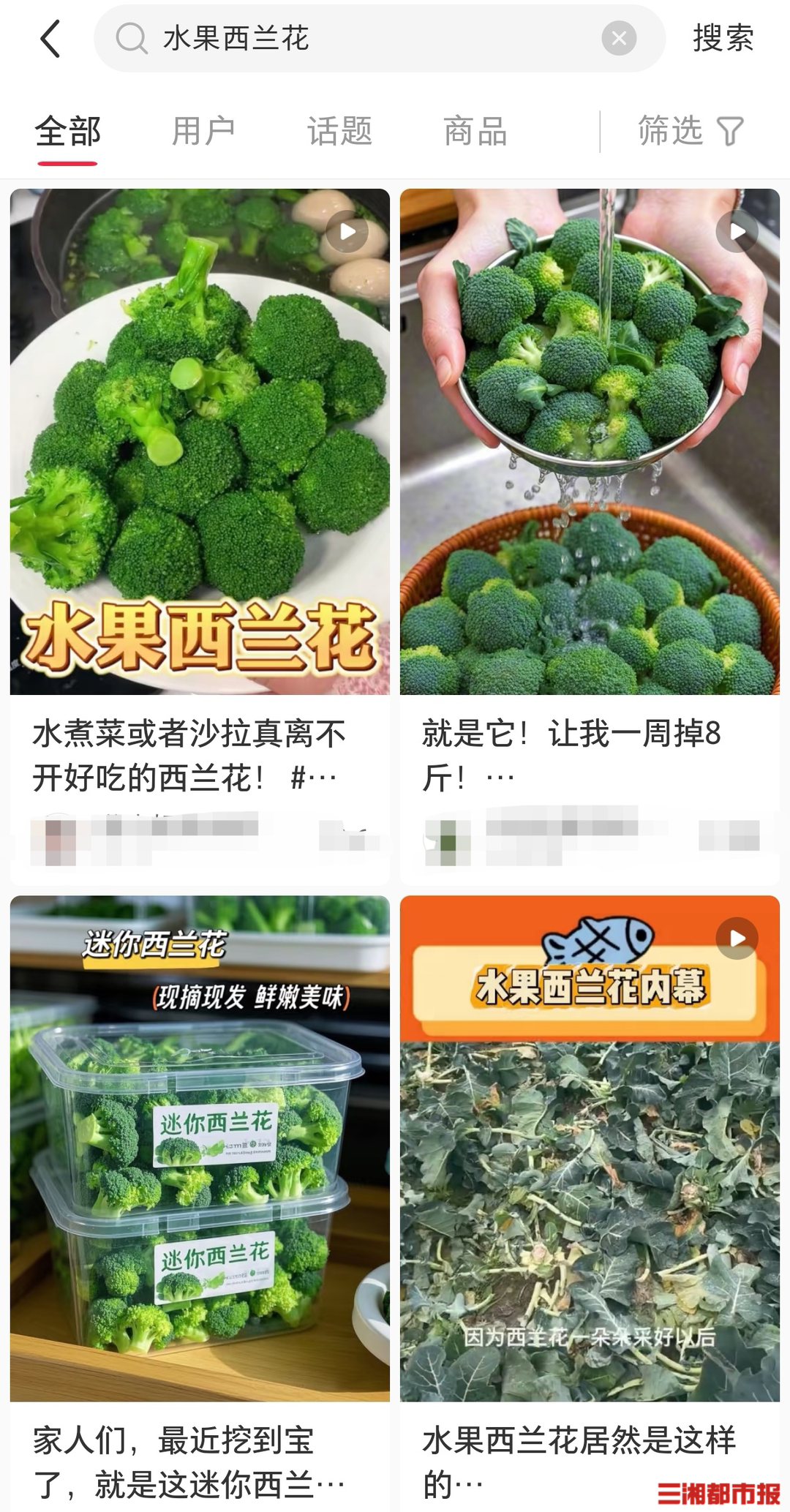“它既有蔬菜的清香,还有水果的香甜。”有博主发视频称,这种“水果西蓝花”富含膳食纤维,一朵相当于15个香蕉或火龙果。记者在网购平台、社交平台上搜索“水果西蓝花”“迷你西蓝花”发现,其一斤价格5元至10元不等,是普通西蓝花的两倍,湖北、河南等地均有生产。