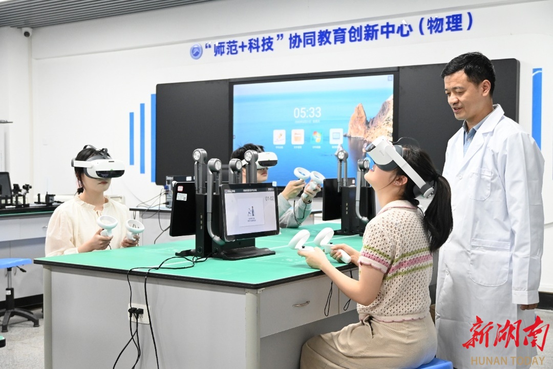 华声在线4月1日讯(通讯员 邹代峰 曾彩云)在人工智能浪潮与基础教育改革同频共振的今天,湖南科技大学物理与电子科学学院以战略眼光擘画"未来教师"培养新图景。依托湖南省物理学新师范创新创业中心,学院创新构建"师范+科技"协同教育创新中心(物理),通过"虚实融合""数据赋能""跨界协同"三大维度,整合中央电化教育馆虚拟实验、理化生实验操作考评系统等智能化教学资源,融入新质生产力与AI技术,锻造兼具科技素养与创新思维的卓越教师成长摇篮,为基础教育数字化转型注入强劲动能。