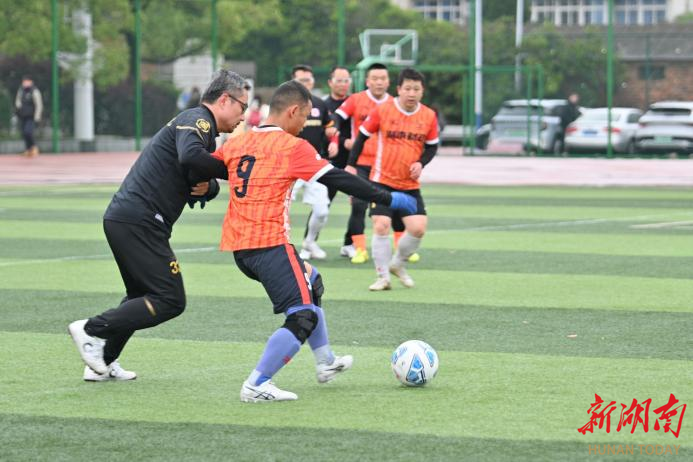 开幕式结束后,两场扣人心弦的揭幕战同步打响。湖南财政经济学院教职工足球队成员精神抖擞,迅速投入到激烈的比赛中。球场上,他们身姿矫健,脚步灵活,凭借默契的配合和精湛的球技,一次次突破对方防线。球员们奋力拼抢,不放过任何一个得分机会,进攻、防守、传球、射门,每个动作都充满力量与美感。赛场边,观众们的加油声、欢呼声此起彼伏,现场气氛热烈非凡,为联赛打响了热血第一战。