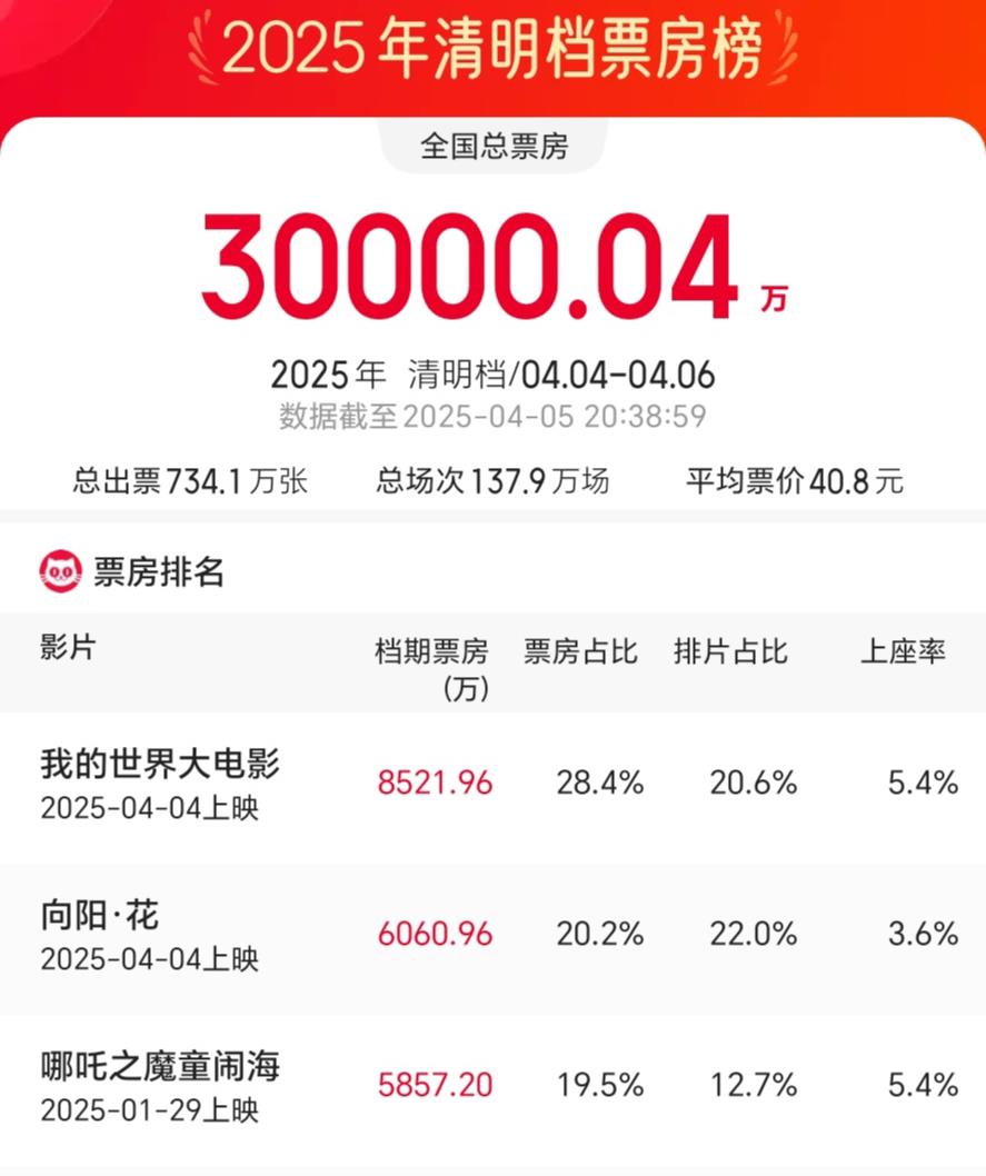 《向阳·花》《哪吒之魔童闹海》分列二三位