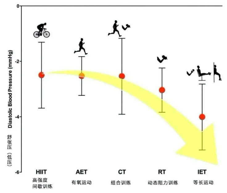不同运动对舒张压(低压)的影响,研究截图
