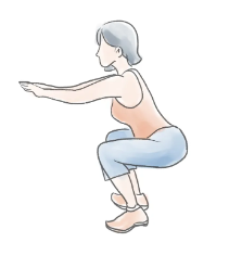 背靠墙,双腿呈90度向下滑到坐姿。双手放在胸前,核心肌肉绷紧。如果觉得动作难度过大,试试降阶锻炼法:大腿与小腿夹角可保持在90至120度之间。