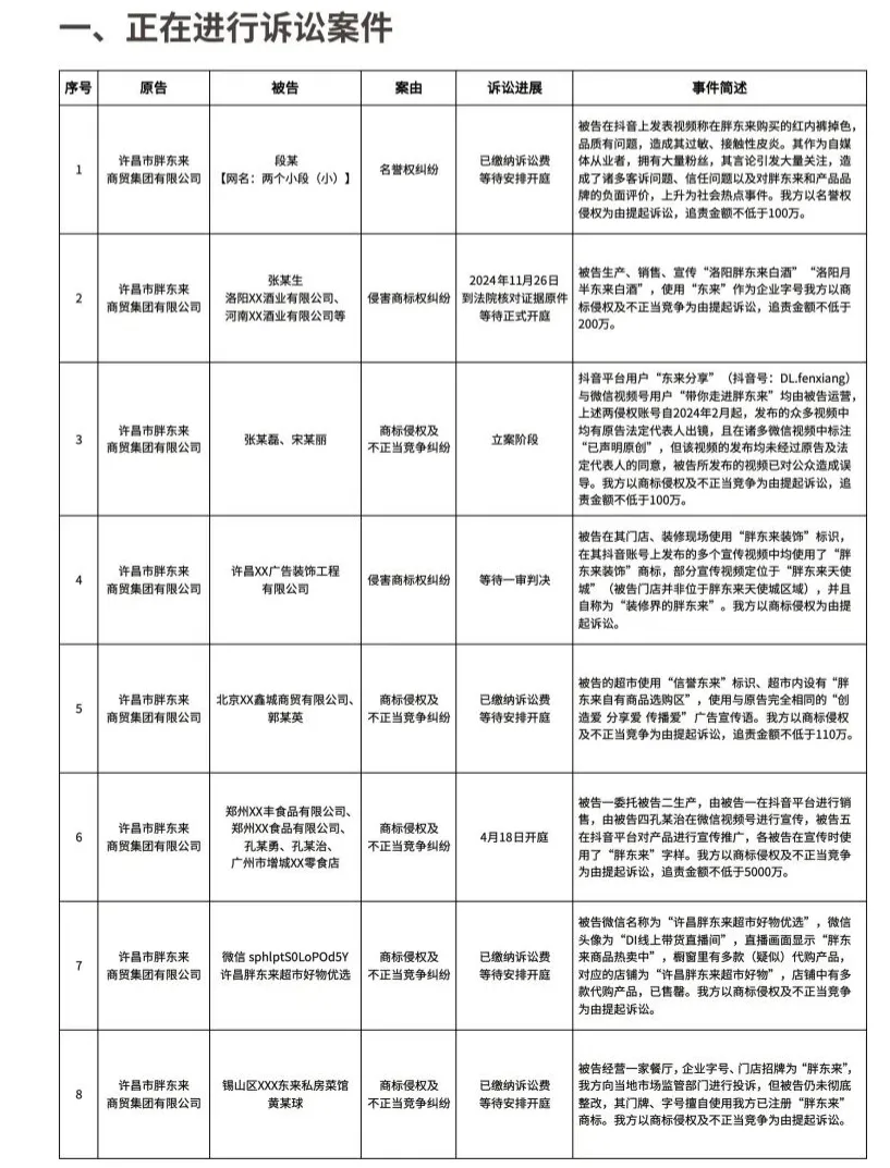 公示显示,胖东来坚决抵制侵权行为,一旦发现即会立即取证,通过法律途径追究责任,并持续公示案件进展。