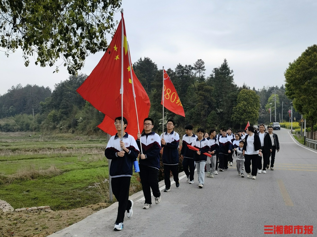 三湘都市报·新湖南客户端4月7日讯(文/视频 全媒体记者 高煜棋 通讯员 冯瑶瑶 刘艺博) 4月7日7时30分,迎着晨光,宁乡市第十高级中学的500名师生在学校门口列队,整装待发。“这是学校第9年举办徒步祭扫活动,希望通过这种方式让学生们铭记历史,传承红色精神。”学校团委书记左比亚介绍。