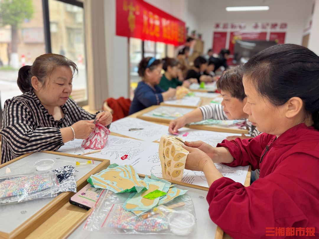 三湘都市报·新湖南客户端4月10日讯(全媒体记者 胡锐 通讯员 喻伟红)4月9日,湖南湘江新区银盆岭街道银桥社区举行了一场别开生面的布画手工活动,吸引社区众多居民参与。裁剪布料、拼接图案、缝制细节……一块块普通的布料经居民们的巧手后,摇身一变成为了一件件艺术品。