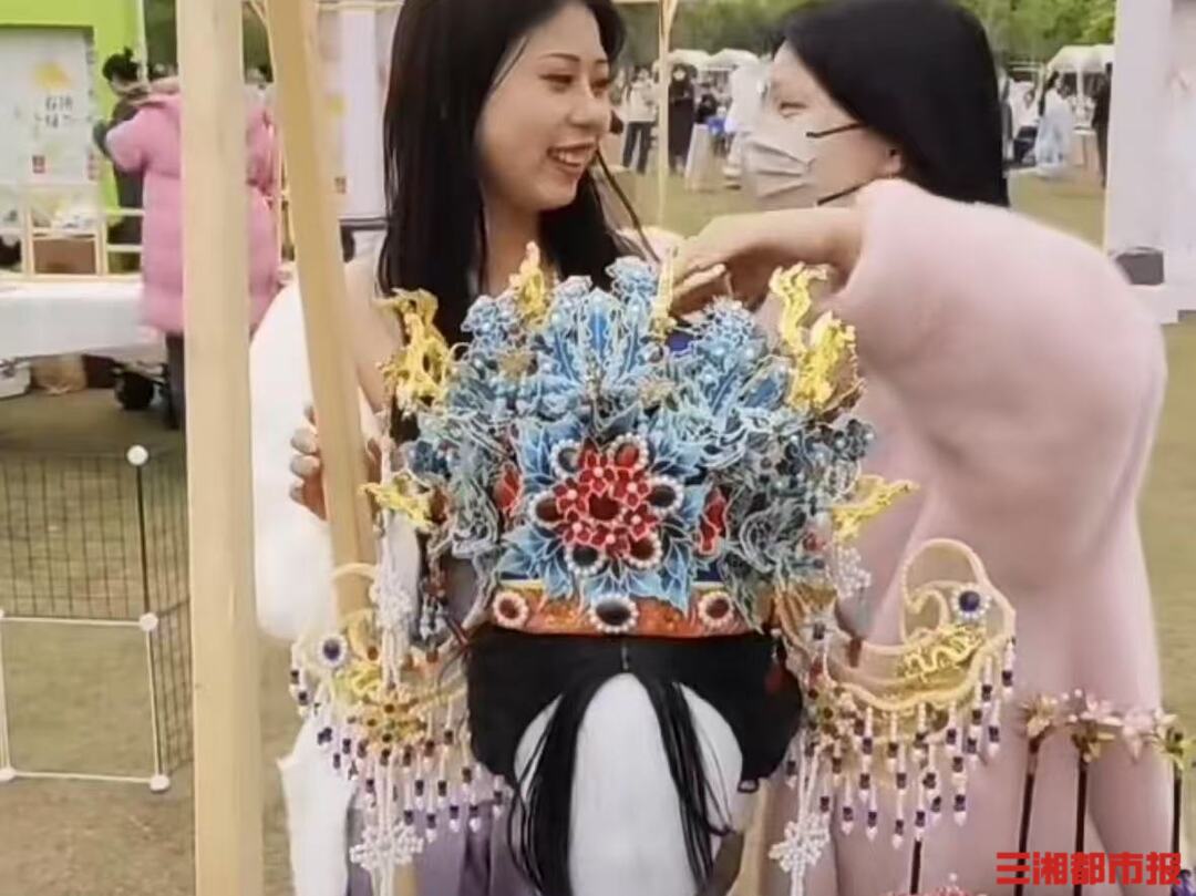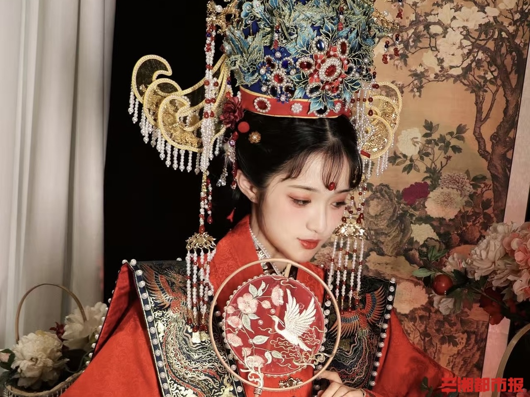 三湘都市报·新湖南客户端4月15日讯(文/视频 全媒体记者 高煜棋 通讯员 冯瑶瑶 刘艺博) “你做的那个凤冠什么时候有档期?好想戴着去拍照呀。”4月15日上午,侯贞雪在自己的汉服馆里接到了好几个顾客的询问。作为湖南株洲的一名手工爱好者,4月12日在湖南长沙汉服协会举办的第六届湖南汉服花朝节上,她手工制作的“九龙九凤冠”惊艳亮相,成为全场焦点。