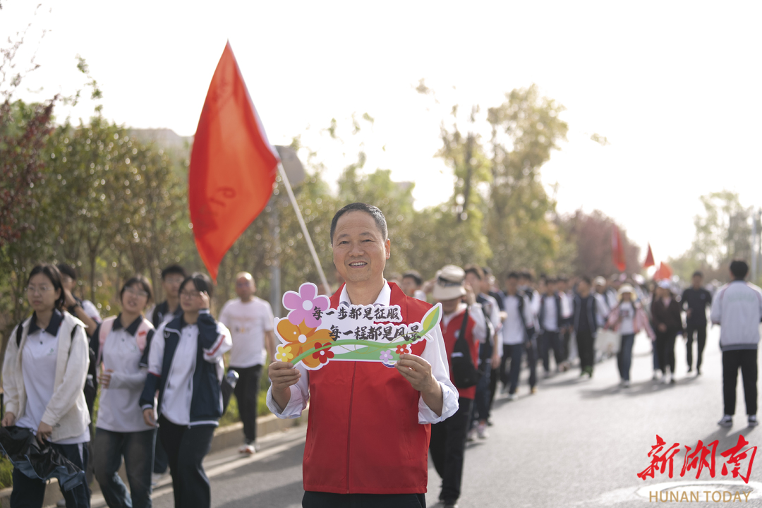 在家校同行的队伍中,620班吴文力的家长全程与师生并肩前行。“这样的活动能让孩子们在行走中感受湖湘精神,磨砺意志。”途中休息时,他轻抚儿子被汗水浸湿的校服,欣慰地说:“这次徒步就像军事拉练,孩子们在传承湖湘精神中锤炼意志,这才是最生动的国防教育课。”