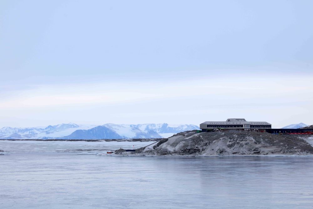 ↑ 4月8日拍摄的南极秦岭站附近的群山。