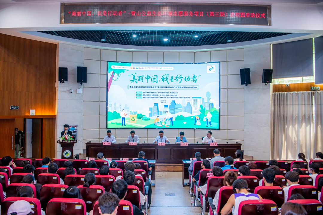 新湖南客户端4月19日讯(通讯员 张妍)今年是“绿水青山就是金山银山”理念提出20周年,4月22日是第56个世界地球日。4月18日,“美丽中国,我是行动者”——青山公益生态环境志愿服务项目第三期启动仪式在长沙环境保护职业技术学院举行。来自省内的高校师生、环保生态导师、青年志愿者代表等350余人齐聚一堂,共同开启我省大学生环保志愿行动新征程。