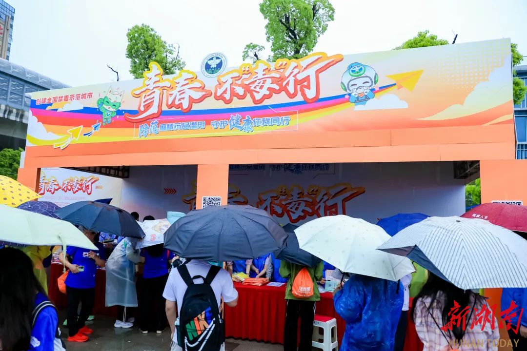 长沙市禁毒办、长沙市社会禁毒协会精心搭建了禁毒宣传展台,准备了禁毒宣传资料、仿真毒品模型、拍照框、纪念小礼品等,并将禁毒宣传单页随毅行包一起发放到近1.3万毅行者手中。