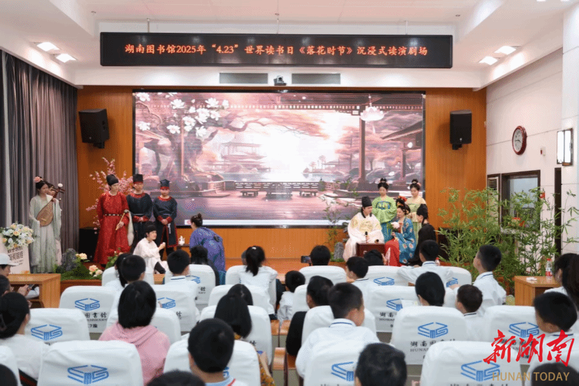 4月19日,湖南财政经济学院人文与艺术学院师生联袂创作的读演剧目《落花时节》在湖南省图书馆多媒体演示厅精彩亮相。作为湖南省图书馆“4.23”世界读书日暨公共图书馆服务宣传周系列活动子项目之一,该剧以跨文体、跨媒介形式,带领观众沉浸式感受古典诗词的魅力,开启一场穿越时空的诗词文化之旅。