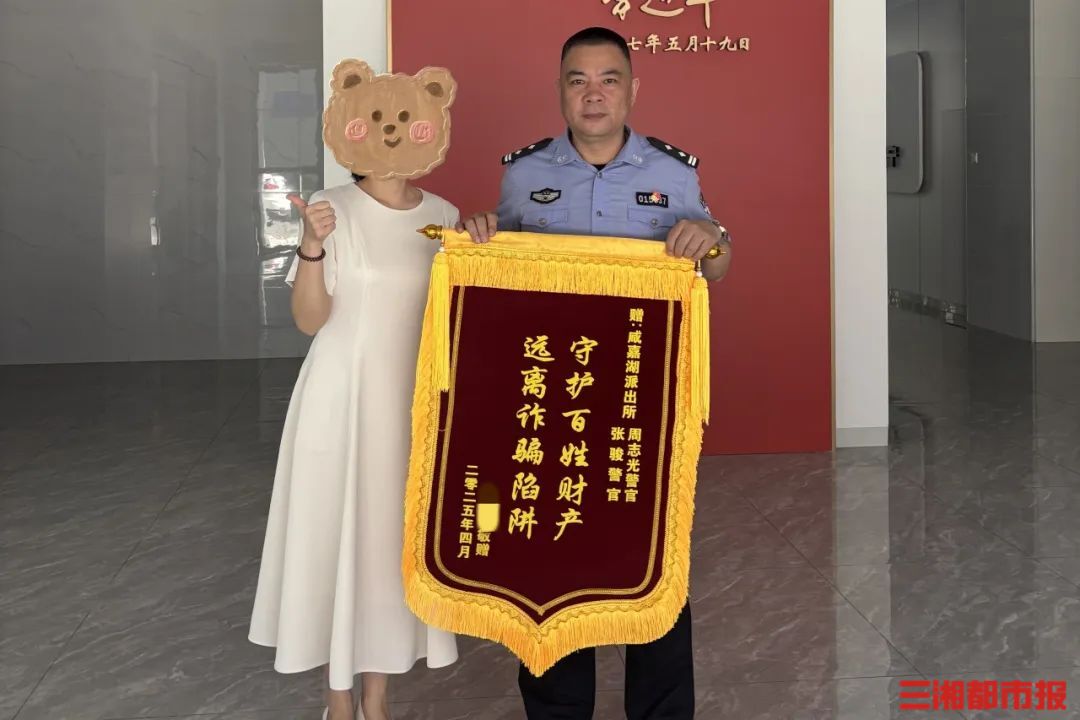 “幸好有你们,才保住了我母亲的养老钱!”4月18日,谭女士的女儿带着定制的锦旗,来到咸嘉湖派出所表达感谢。