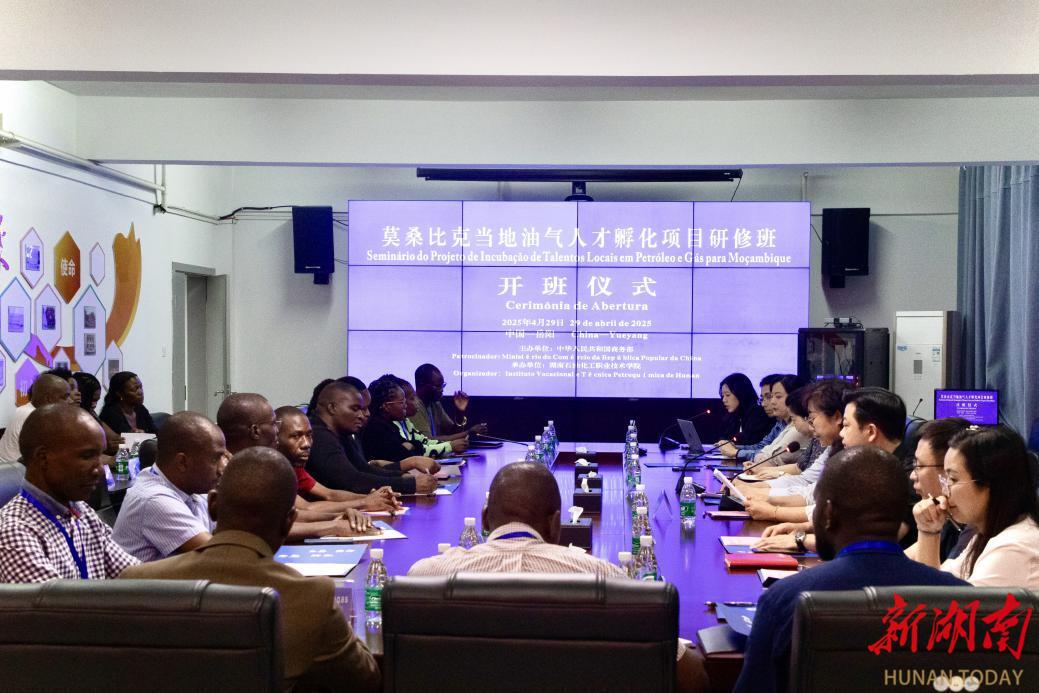 新湖南客户端4月30日讯(通讯员 邓玉莹 邵茜茜 王颖)4月29日,由湖南石油化工职业技术学院承办的莫桑比克当地油气人才孵化项目研修班在该校开班。莫桑比克能源矿产部、各省能矿厅以及中石油公司的25位学员开启了学习之旅。