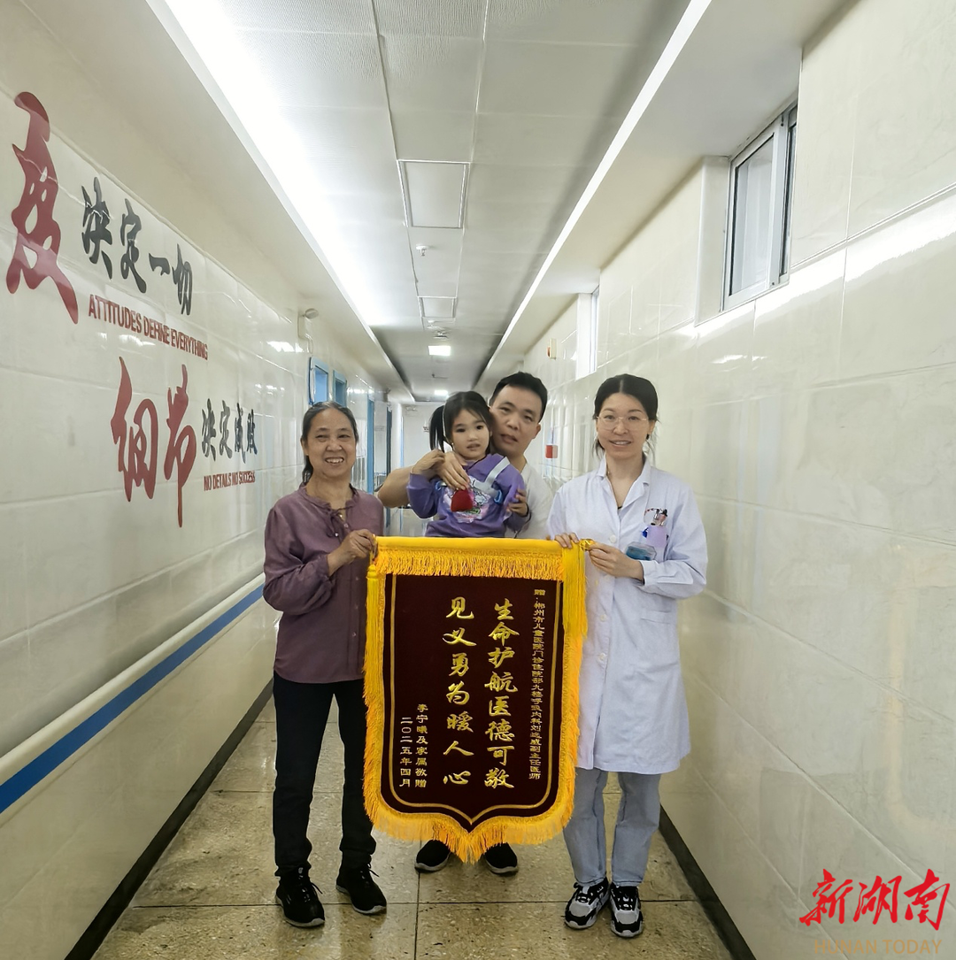 小女孩在医院治疗期间,刘远威医师一直牵挂着她,并多次放弃休息时间跟进了解病情和治疗,不断鼓励小女孩和安慰家属。经过半个多月的精心治疗,小女孩近日康复出院。4月29日,小女孩的奶奶和爸爸特意制作了“生命护航医德可敬,见义勇为暖人心”的锦旗送给了刘远威,激动地说道:“非常感谢刘医生,没有你孩子就得不到及时救治,你是我家小孩一辈子的大恩人!”刘远威医生用实际行动践行了新时代医务人员“救死扶伤”的使命担当,传递了“医者仁心”的大爱精神。