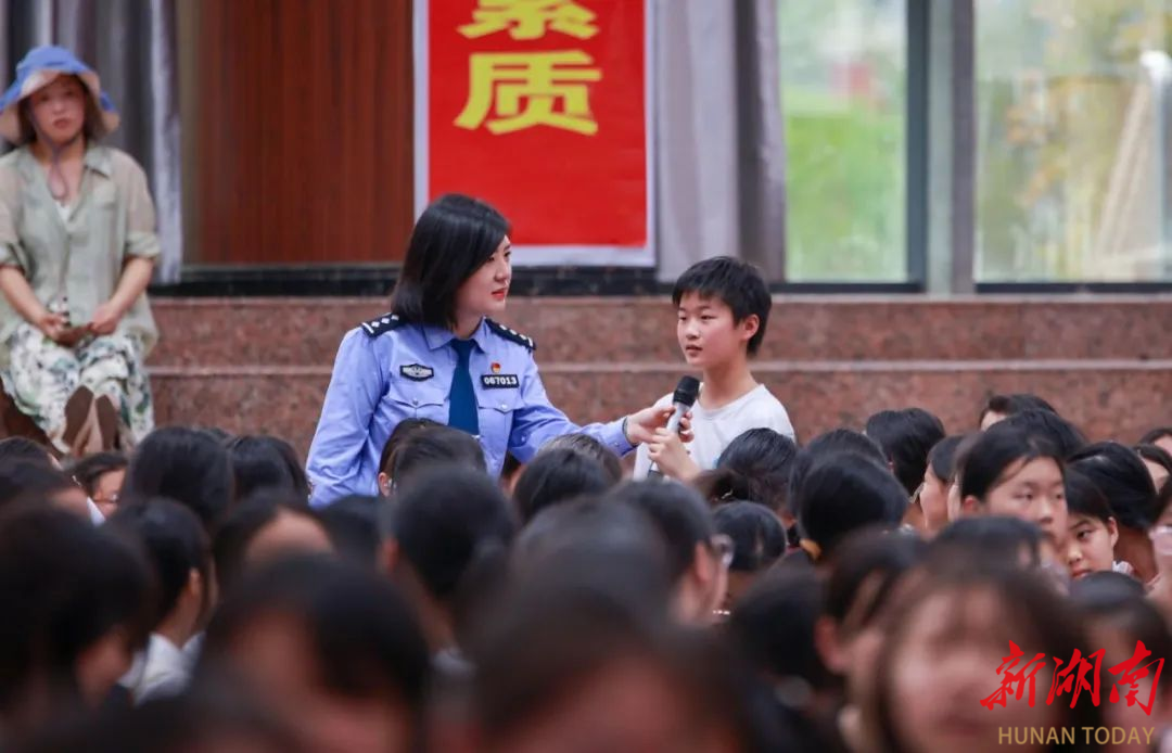 在校园铃声与欢笑声交织的课堂,隆回公安女警宣讲团成员谭丽敏的话筒是播撒安全种子的“魔法棒”。当蓝色警服掠过课桌间的通道,指尖轻叩话筒的脆响便点亮了孩子们的目光——讲到“网络陷阱”时,女警轻晃话筒模仿诈骗电话的甜腻语调,惹得后排男生攥紧铅笔“怒怼”空气骗子;说到校园欺凌,话筒突然压低成闷雷般的警示,让交头接耳的小脑袋瞬间挺直,仿佛看见隐形的盾牌在讲台前升起。