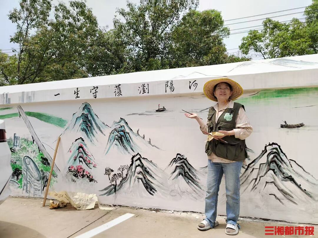 这幅墙画的创作者并非职业画家,而是来自湖南邮电职业技术学院的教师唐柳。这位年逾五旬的环保志愿者,用跨越专业的笔触,为城市留下了生态保护的视觉宣言。