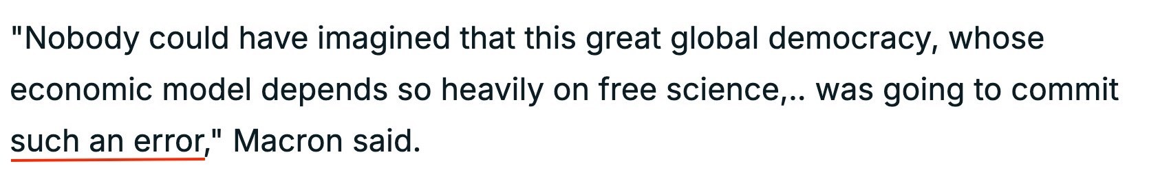 一直抱怨欧洲在贸易等各方面“占美国便宜”的美国现政府这次却亲手把“便宜”送给欧洲,以至于法国总统马克龙感叹:“没有人会想到,一个经济模式如此依赖自由科学的国家竟会犯下这样的错误。”