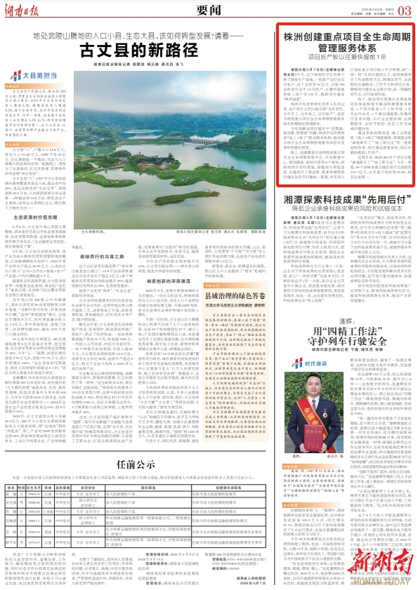 为有效解决项目建设中“前期弱、推进慢、管理虚”问题,株洲市发改委探索“线上+线下”联动服务机制,推动重点项目全生命周期管理服务深层次变革和智慧化转型。