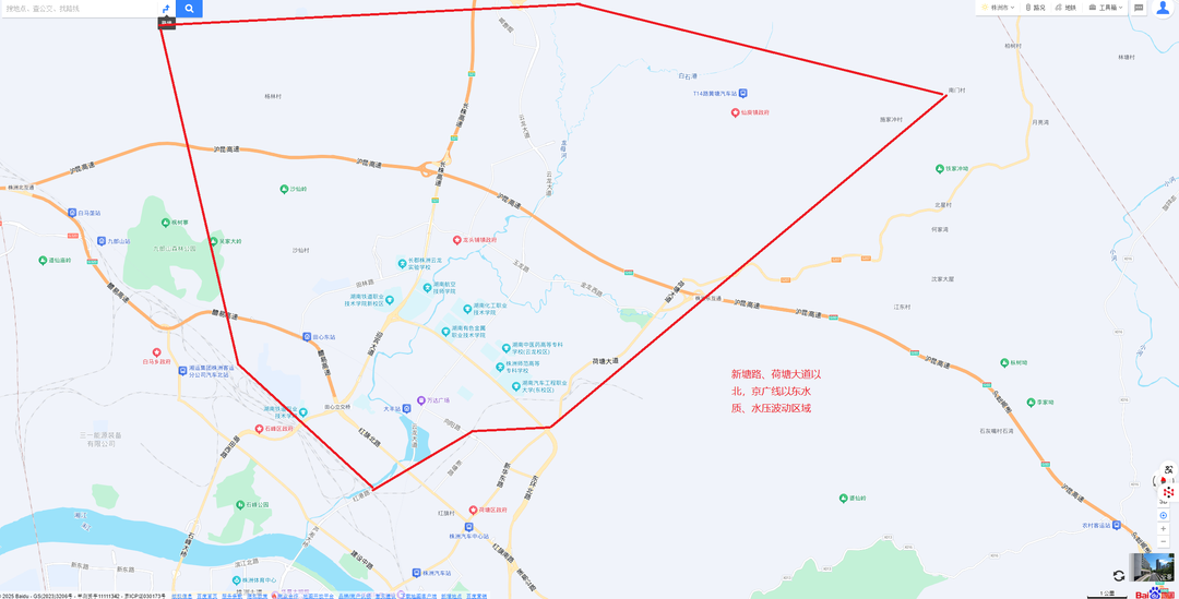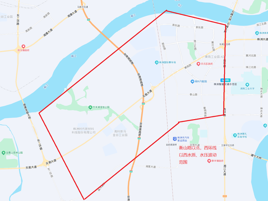 受此影响,本次影响范围:天元区衡山路以北,西环线以西,石峰区白石港路以北,荷塘区新塘路、荷塘大道以北,京广线以东,芦淞区枫溪大道(盛世路-天池路)、江渌路、铁东路、迎新路、机场大道以及西南侧千亿大道沿线,渌口区部分范围水质、水压将出现一定波动。