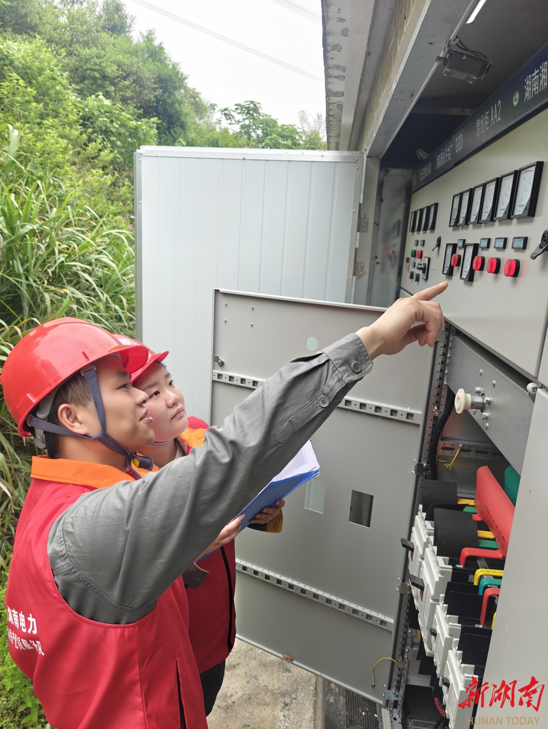 湖南日报·新湖南客户端5月8日讯(通讯员 王瀚辉)5月8日,“五一”小长假余温未褪。一辆黄色工具车缓缓驶入株洲渌口区南洲镇早竹村水仙湖景区,在箱式变压器前停下。黄耀和李钰洁身着印有“东方红(火车头)共产党员服务队”字样红色马甲,从车内走下来,一前一后径直走向山腰。他俩来自国网株洲渌口区供电公司南阳桥供电所。“经历了节假日用电高峰的‘洗礼’,今天来做个‘回诊’,看看它们是否有什么不适?”他一边打开箱式变压器柜门,一边笑着说道。