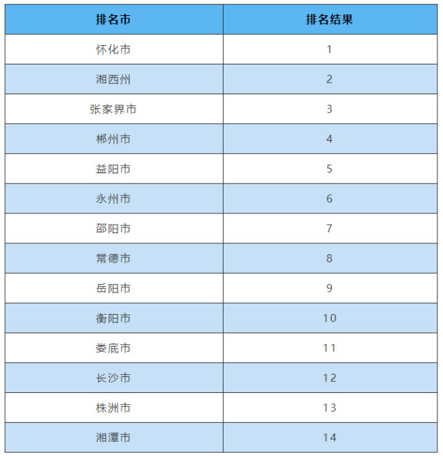 按照城市环境空气质量综合指数评价排名,3月,从好到差依次为怀化市、湘西土家族苗族自治州、张家界市、郴州市、益阳市、永州市、邵阳市、常德市、岳阳市、衡阳市、娄底市、长沙市、株洲市、湘潭市。