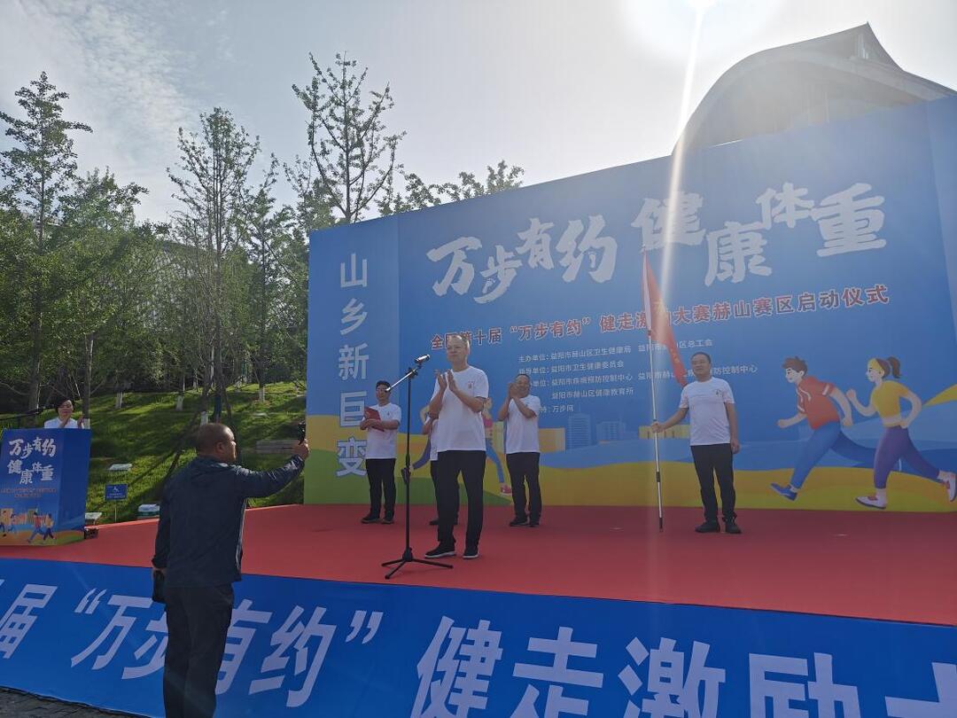 启动仪式上,益阳市卫生健康委员会党组成员、副主任、市疾病预防控制局局长杨建明向赫山区卫生健康局党组书记、局长盛耀光授旗,赫山区人民政府副区长赵嘉喜同志宣布活动正式启动后。各参赛队伍在专业教练的指导下开展热身运动,随后以中心广场为起点开启健走。
