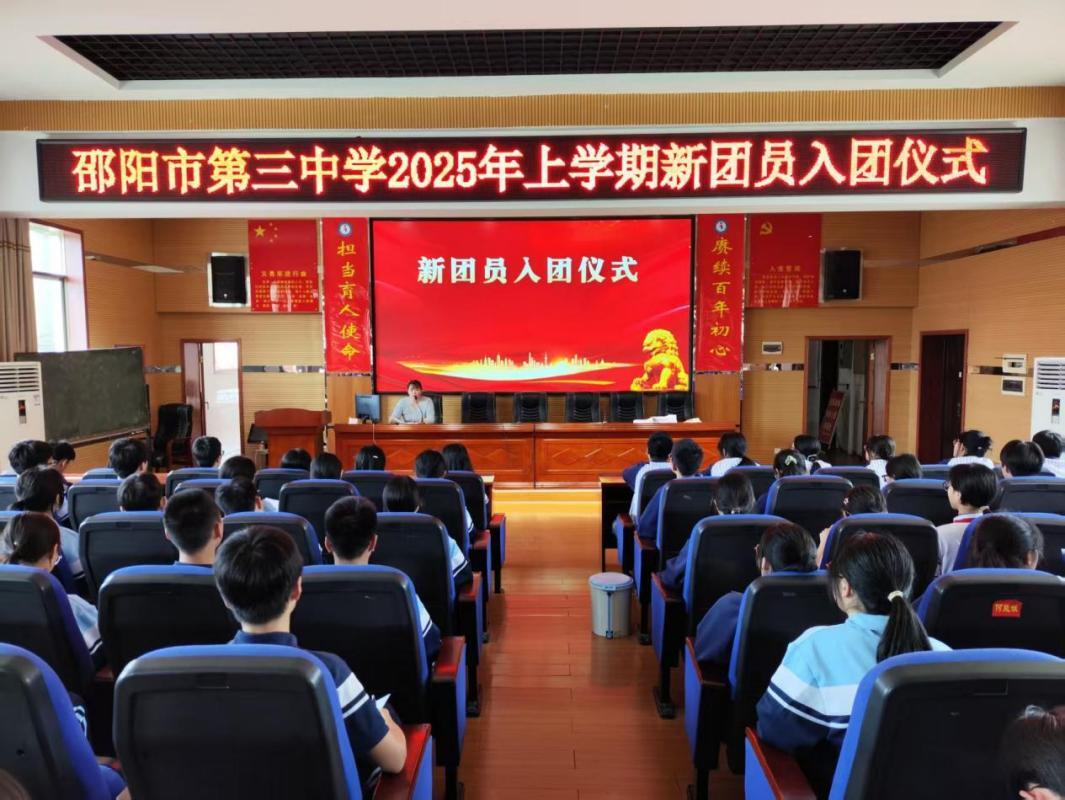 湖南日报·新湖南客户端5月9日讯(通讯员 何丰勤)为加强共青团组织建设,凝聚青春力量,5月9日中午,邵阳市第三中学举行2025年上学期新团员入团仪式。