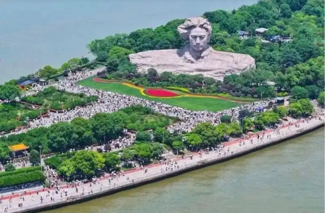 (“五一”假期橘子洲头游人如织。 通讯员 摄)