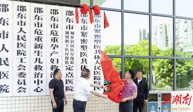 大众卫生报·新湖南客户端5月10日讯(通讯员 谢志刚 申秀梅)5月9日,邵东市紧密型医共体总医院揭牌仪式在市人民医院举行。邵阳市卫健委党组成员、副主任范志锋,邵东市人民政府副市长谢辉伟为总医院揭牌。揭牌仪式由市卫健局党组书记、局长黄祥田主持。全市各院区、各医共体单位、医共体九大管理中心同步挂牌。