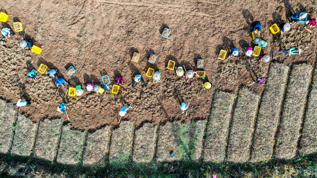 (邵阳县黄塘檀合村玉竹种植基地,村民们正在采挖玉竹 申兴刚摄)