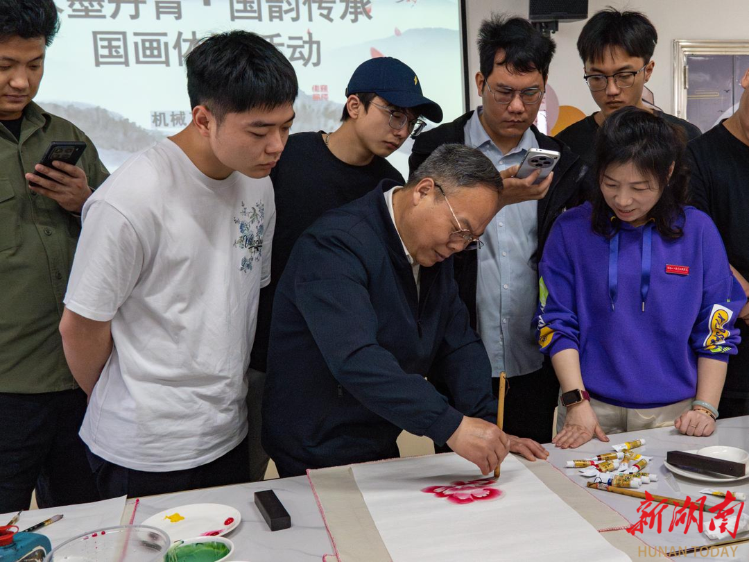 湖南日报·新湖南客户端5月13日讯(通讯员 杨峰 贺雪晴 肖时森)近日,湖南化工职业技术学院举办“水墨丹青・国韵传承”国画体验活动。全国百名优秀志愿者、中国好人、湖南省优秀共产党员、国家一级美术师唐先华担任主讲,湖南株洲女画家邓新慧老师与学校教师高永卫老师协同助教,近 40名师生参与活动。