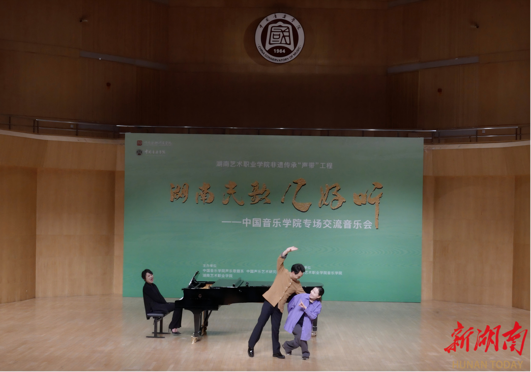 本场音乐活动由中国音乐学院声乐歌剧系与湖南艺术职业学院联合主办,音乐会由湖南艺术职业学院教师团队、非遗传承人、戏曲演员与中国音乐学院学子共同呈现,为京城观众献上了一场原汁原味的艺术对话。