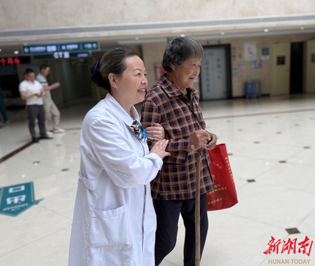 湖南日报·新湖南客户端5月13日讯(通讯员 刘宝玉 伍云婷)5月8日上午,永州中心医院零陵院区门诊大厅内,一位视力模糊的老奶奶正扶着墙壁艰难挪步。这一幕被全流程服务中心的工作人员欧阳兰华敏锐捕捉,她立即放下手头工作上前搀扶,开启了一场温暖的就医陪伴之旅。