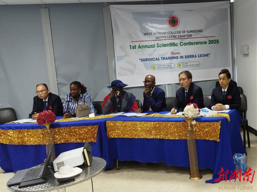 湖南日报·新湖南客户端5月13日讯(通讯员 夏红星)非洲塞拉利昂当地时间5月10日,西非外科医师协会塞拉利昂分会首届学术年会在首都弗里敦召开。中国第26批援塞医疗队队长、南华大学附属南华医院副院长刘龙飞教授率队参会,与来自湖南省南华大学附属南华医院及中南大学湘雅医院的专家团队共同亮相,以卓越的专业技能和无私的国际主义精神,向世界展示了中国医疗队的非凡风采,彰显了湖南省援非医疗事业的深远意义与广泛影响。