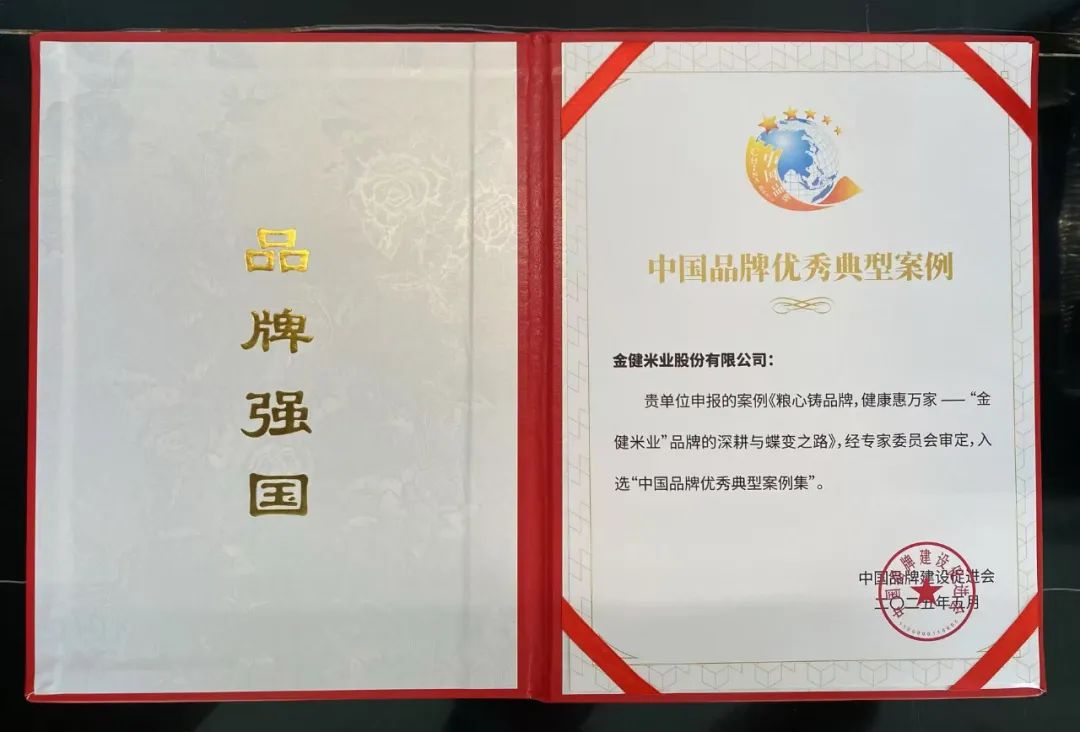 会上,金健米业“粮心铸品牌,健康惠万家——金健品牌的深耕与蝶变之路”品牌案例脱颖而出,成功获评中国品牌优秀典型案例。