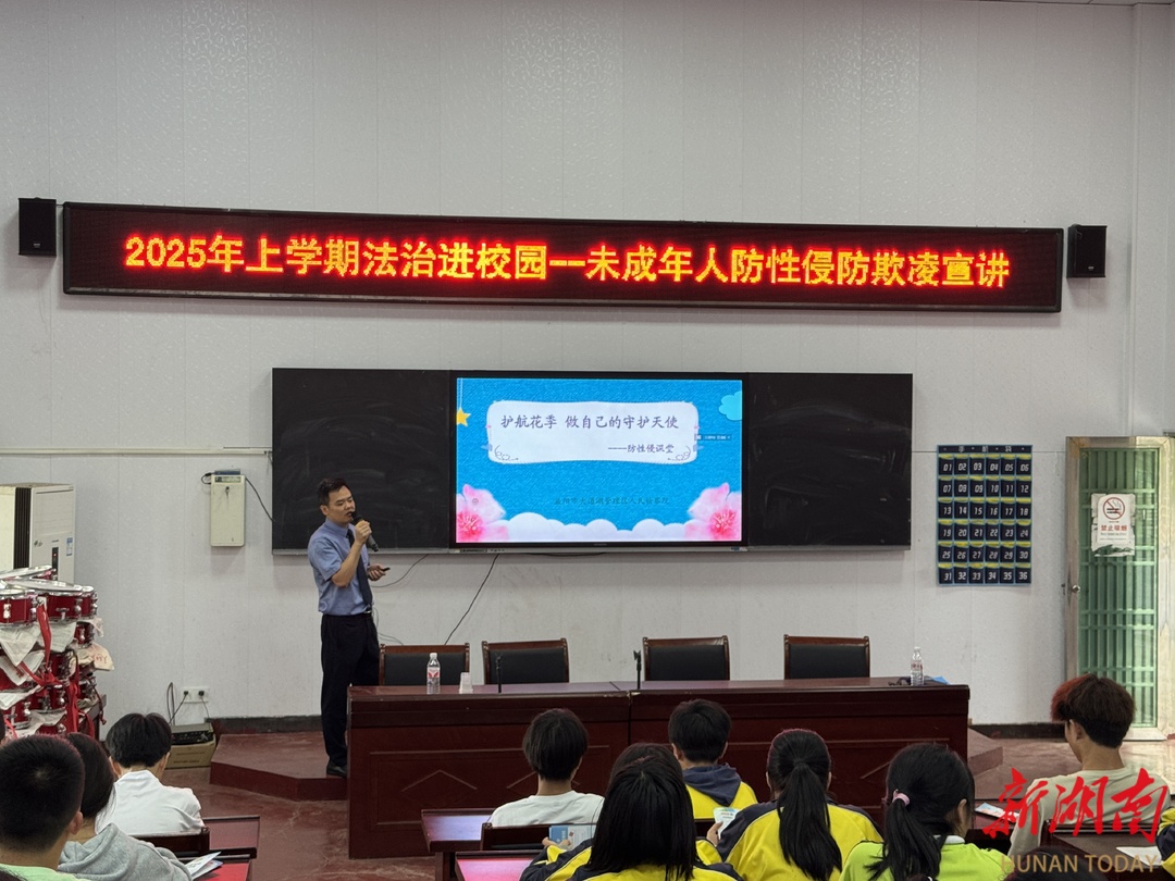 湖南法治报讯(通讯员 甘宇)5月8日,益阳大通湖区人民检察院检察官走进北洲子镇中学开展法治宣讲活动。活动通过沉浸式普法形式,将法治种子播撒进青少年心田,助力未成年人提升自我保护意识与法治素养。