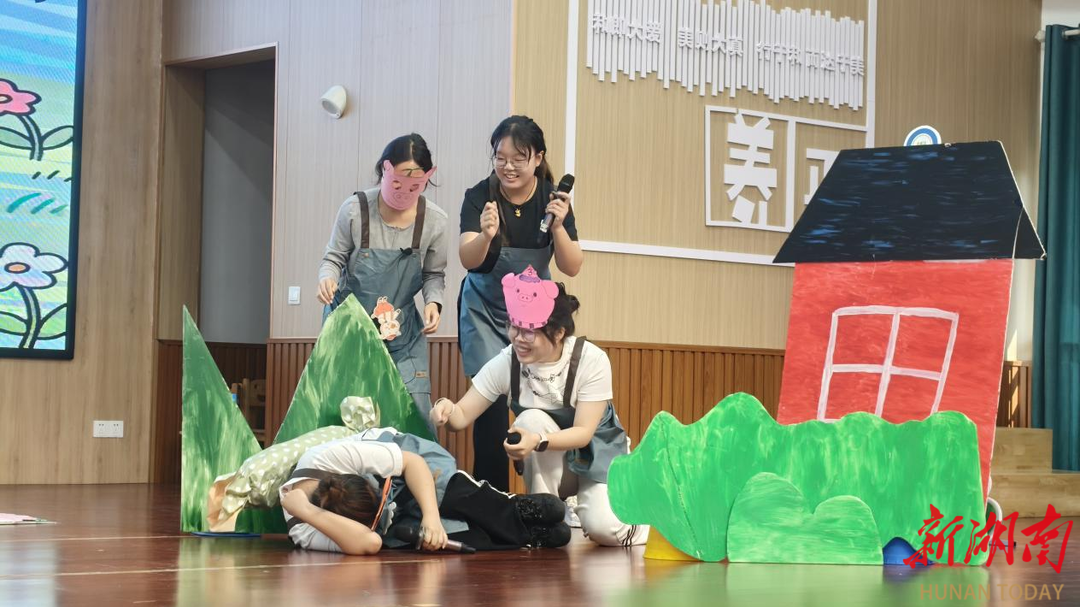 科教新报·新湖南客户端讯(通讯员 庄小林)近日,怀化市鹤城区第二幼儿园内童声鼎沸,一场以“围裙剧”为载体的绘本演绎活动精彩上演。作为该园第四届“本草有约·童耕四季”主题耕读节的重要组成,怀化学院学前教育专业实习教师化身“围裙剧”演员,以《三只小猪》《谁咬了我的大饼》两部经典绘本为蓝本,通过创意演绎实现劳动教育与文化浸润的有机融合。