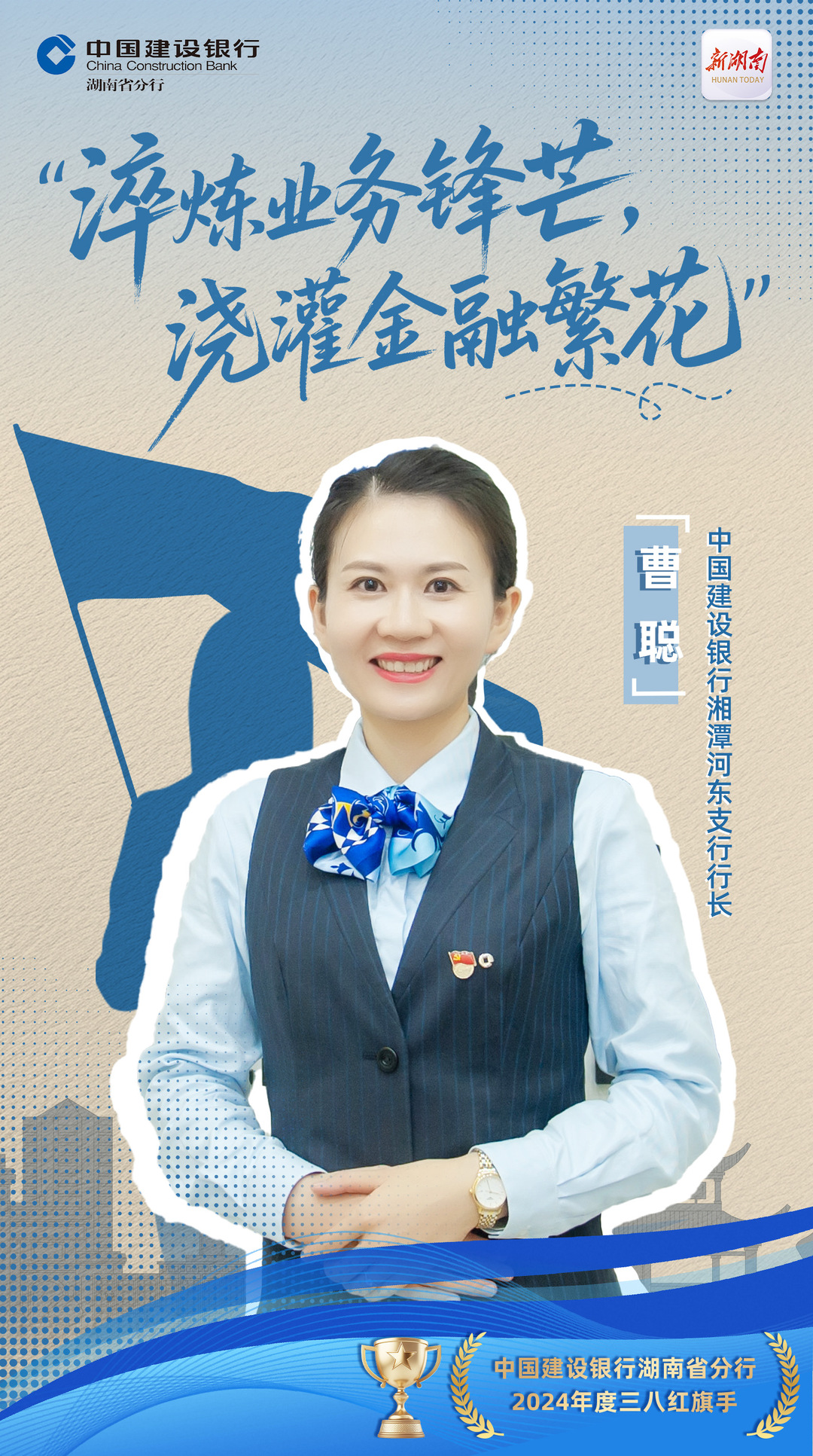 曹聪,女,现任中国建设银行湘潭河东支行行长,她将专业融入业务攻坚的每个细节,也融入团队成长的点滴日常,让金融服务既有破局的锋芒,也有暖人的温度。