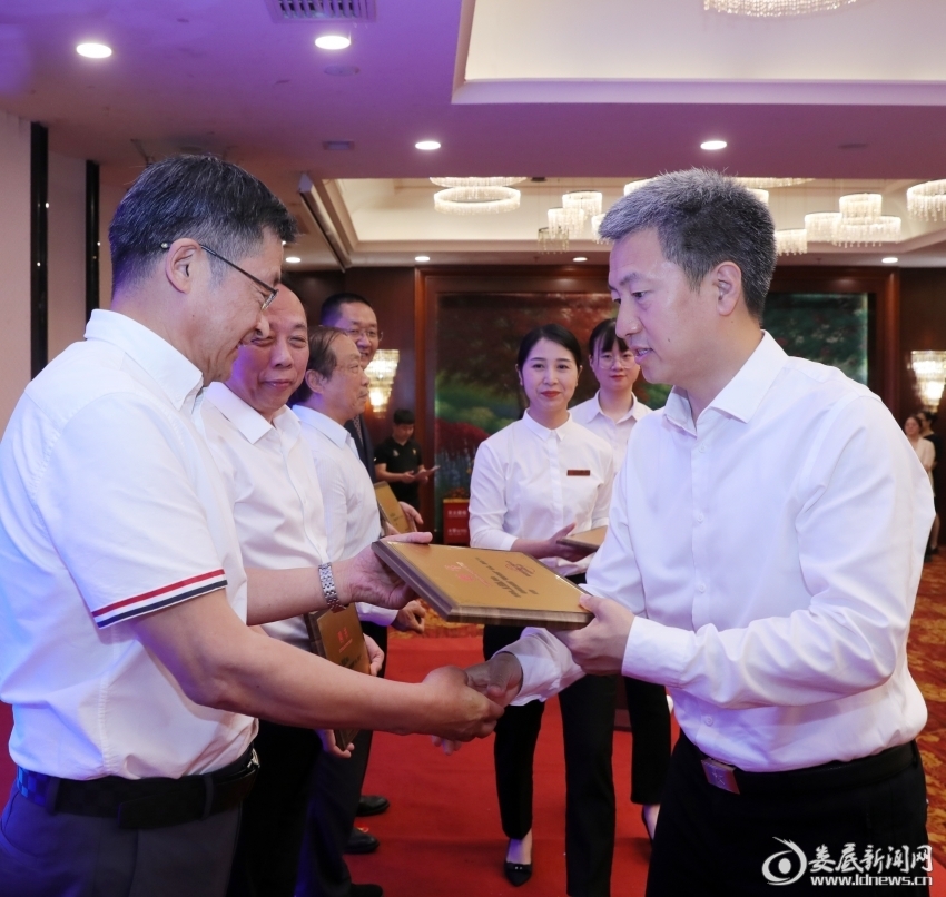 △签约仪式上,娄底市委书记曾超群为受聘“娄底市银龄智库”的首批专家颁发证书