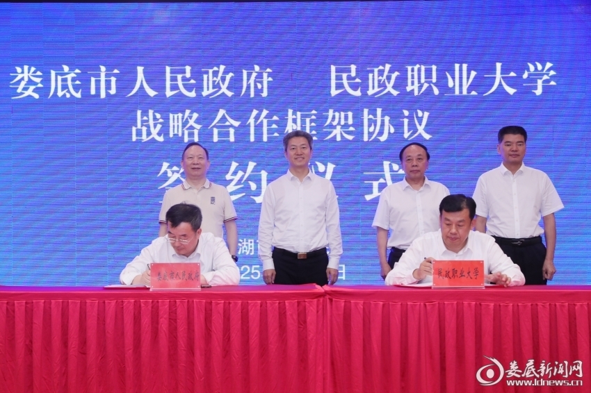 湖南日报·新湖南客户端5月16日讯(通讯员 罗宗 刘婷 张海波)5月15日,娄底市与民政职业大学战略合作签约仪式举行。娄底市委书记曾超群、民政职业大学党委书记邹文开出席并致辞。