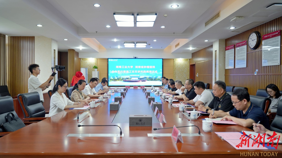 湖南日报5月18日讯(通讯员 尹荔玮)5月15日下午,湖南工业大学与湖南省肿瘤医院合作签约暨“湖南工业大学医工交叉研究院”揭牌仪式在湖南工业大学崇德楼340会议室举行。湖南省肿瘤医院,湖南工业大学主要领导及双方相关部门负责人共同见证这一重要时刻。