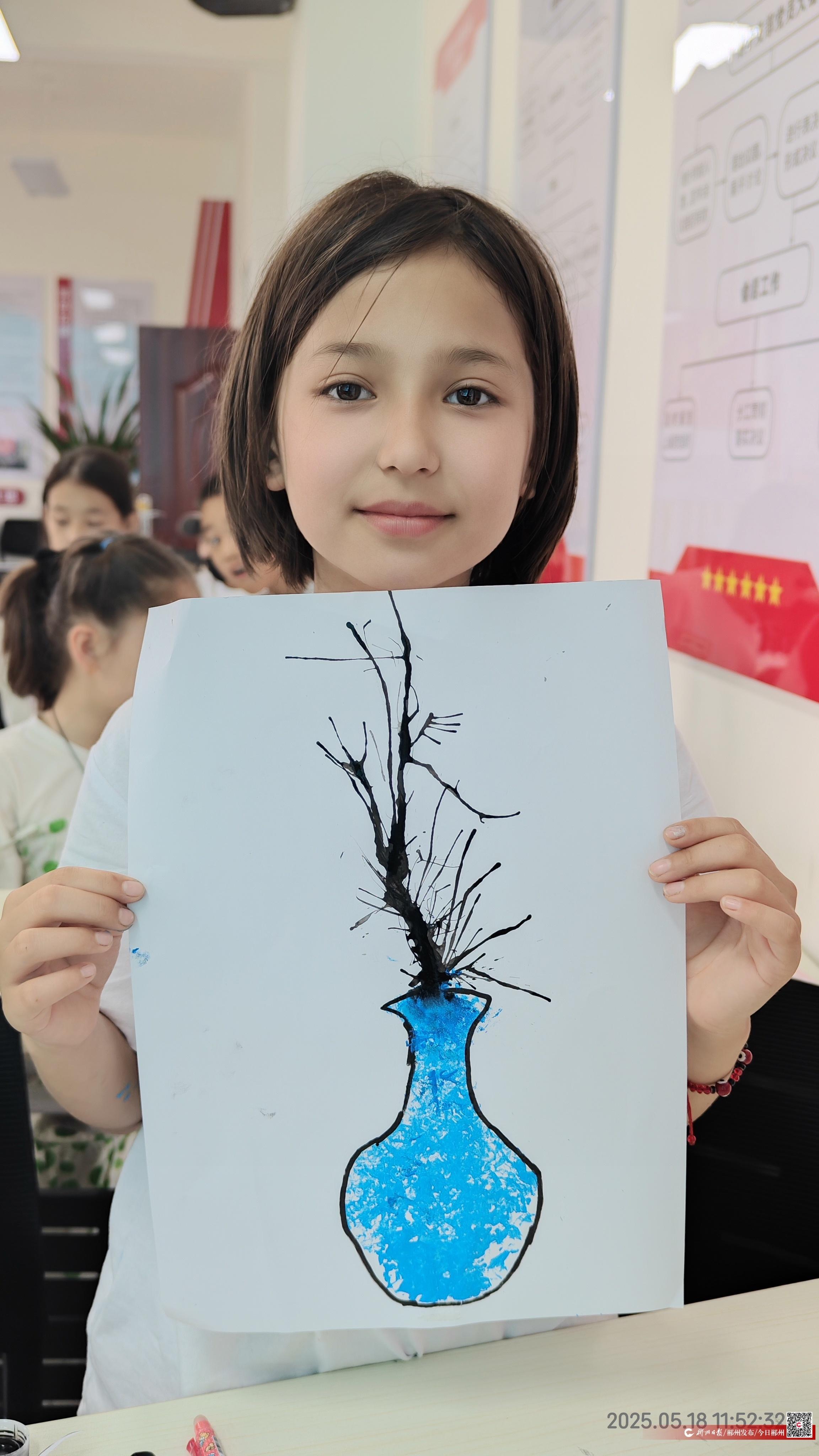 在此次的特色课程中,美术课融合传统拓印与现代吹墨,让古老技艺碰撞新潮创意;音乐课用手风琴搭配手势舞,为经典曲目注入新活力;科创课以趣味电磁实验,点燃学生科学探索热情。来自天泉社区、托克逊县第二小学四年级1班的学生拜尔娜·艾合拜尔兴奋地展示自己创作的拓印吹墨画:“周末课堂既能学知识,又能做好事,特别有意义!”