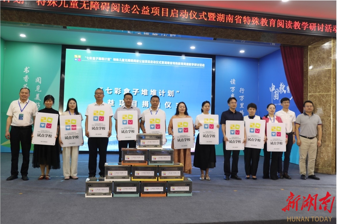 活动为“七彩盒子堆堆计划”特殊儿童无障碍阅读公益项目的10所试点校授牌,中国残疾人福利基金会、中国盲文出版社向试点校湘西州特校捐赠价值10万元的助学产品。