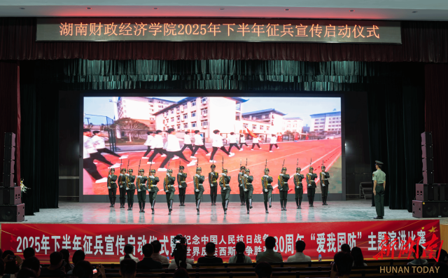 5月14日,湖南财政经济学院2025年下半年征兵宣传启动仪式暨纪念中国人民抗日战争暨世界反法西斯战争胜利80周年“爱我国防”主题演讲比赛在主校区大礼堂举行。湖南财院党委副书记苏玲,党委委员、宣传部、统战部部长文炳勋,岳麓区人民武装部部长余岱民出席活动。学生工作部、武装部,招生与就业指导中心,团委负责人,各二级学院学工负责人及学生代表参加。