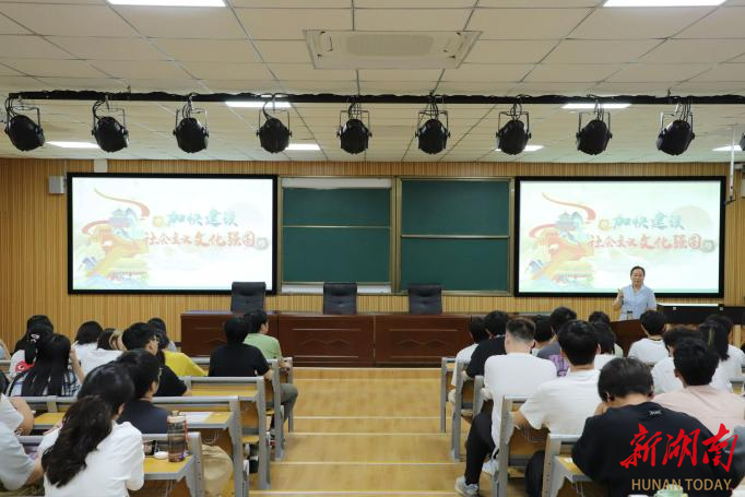 5月16日下午,湖南财政经济学院党委副书记苏玲在雷锋书院至诚楼L1214教室为雷锋书院学子讲授“加快建设社会主义文化强国”专题形势与政策课。