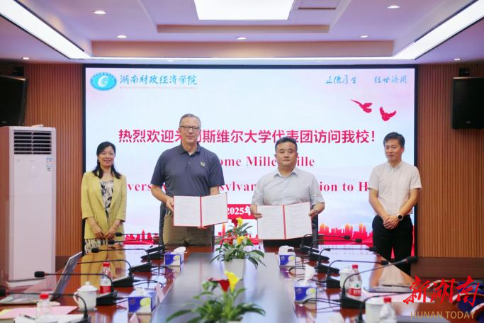 5月16日,美国米勒斯维尔大学副校长丹尼尔・库尔马拉率代表团访问湖南财政经济学院。湖南财院副校长潘爱民,国际合作与交流处、厚生国际教育学院相关负责人参加会见。