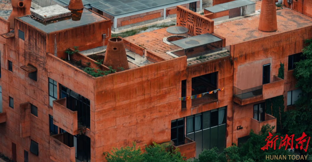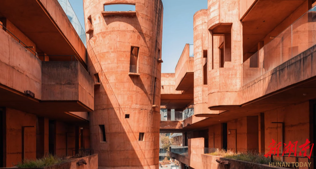 这处红色建筑便是“钵子菜博物馆”,它采用红陶粒混凝土创新工艺,以常德特色饮食文化为主题,外观模拟传统钵子容器,成为街区文化符号。