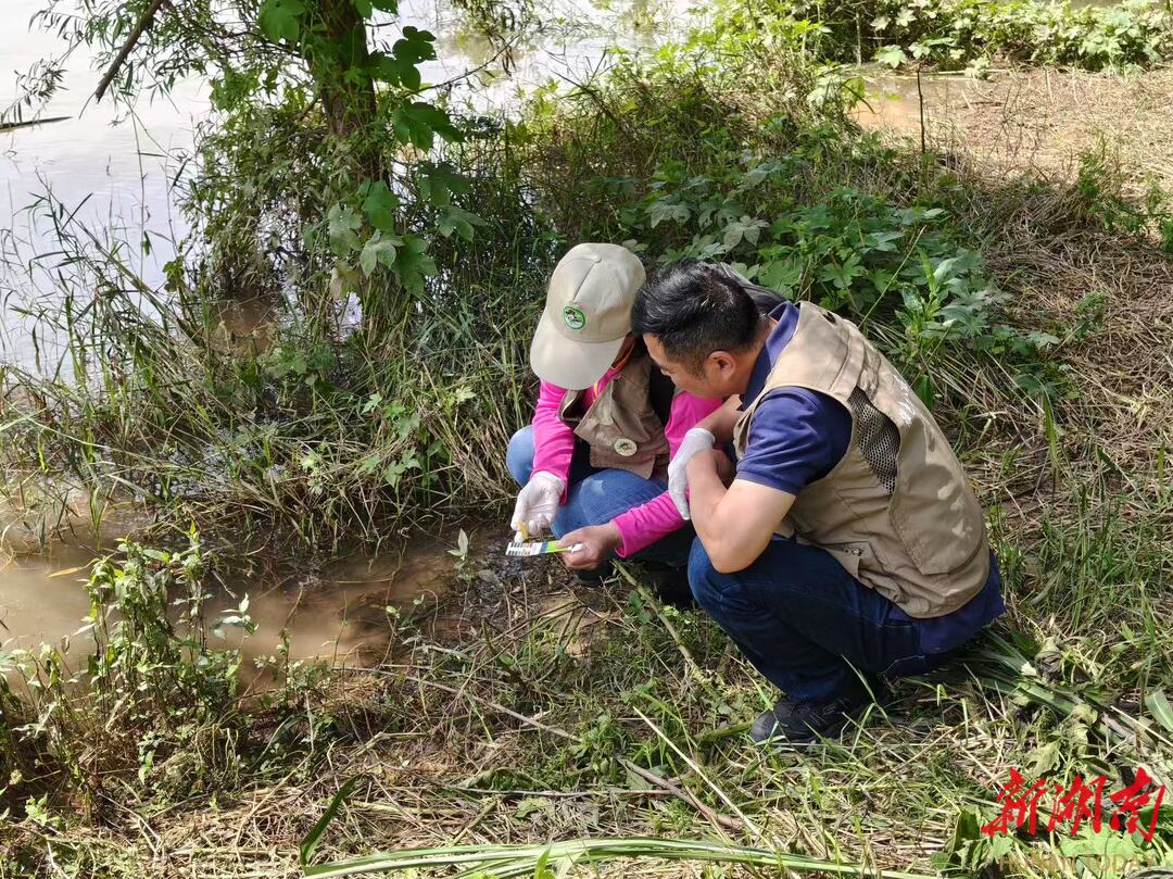 5月14日,张纪湘和团队成员在湘江边检测水质。