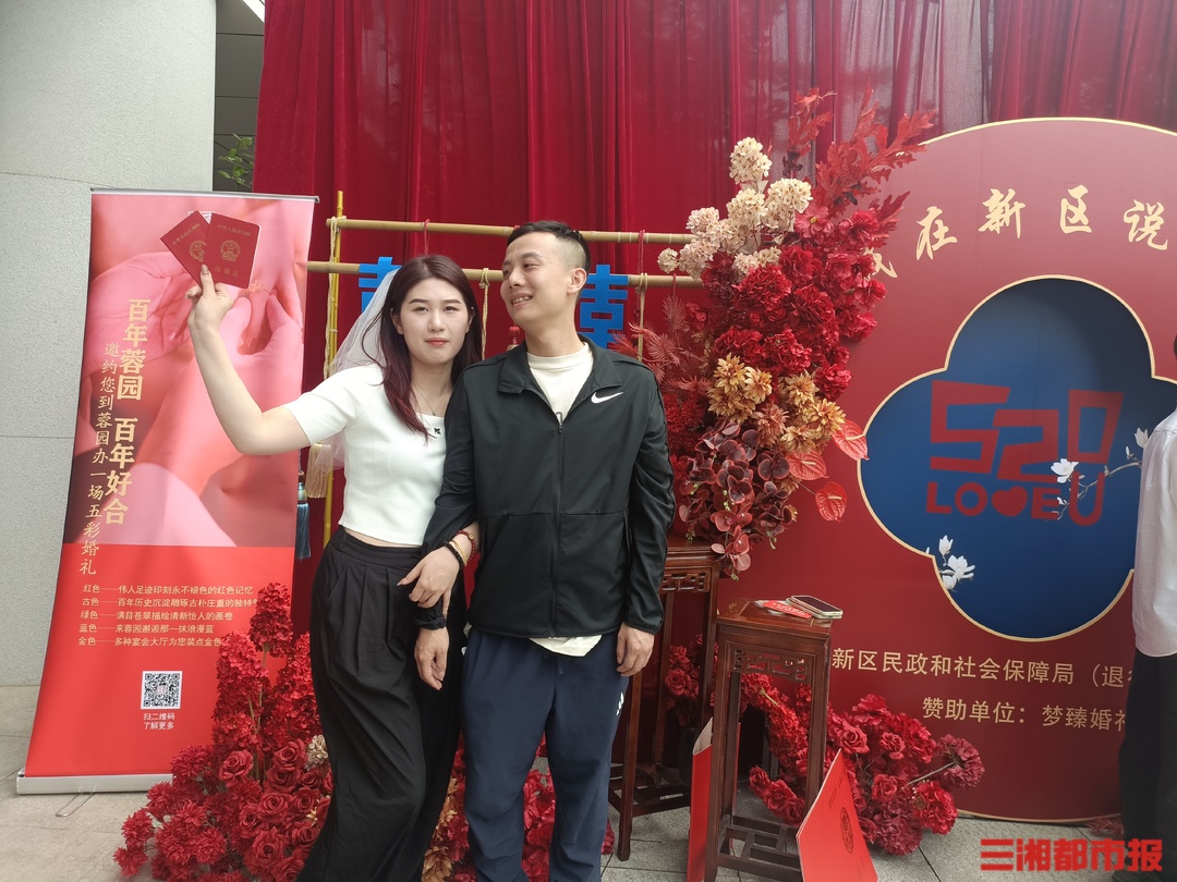 三湘都市报·新湖南客户端5月20日讯(文/视频 全媒体记者 杨昱 通讯员 龙羽茜)“5月20日,婚登网上预约满了,我们担心赶不上,凌晨3时就过来排队了,结果现场已经有3对新人了。”5月20日,湖南湘江新区民政和社会保障局婚姻登记中心,谭先生牵着爱人唐女士的手,满脸幸福的微笑。谭先生告诉记者,他和妻子都是邵阳人,经朋友介绍,认识才3个月就选择共结连理,“我们的三观契合,决定往后余生携手同行。”