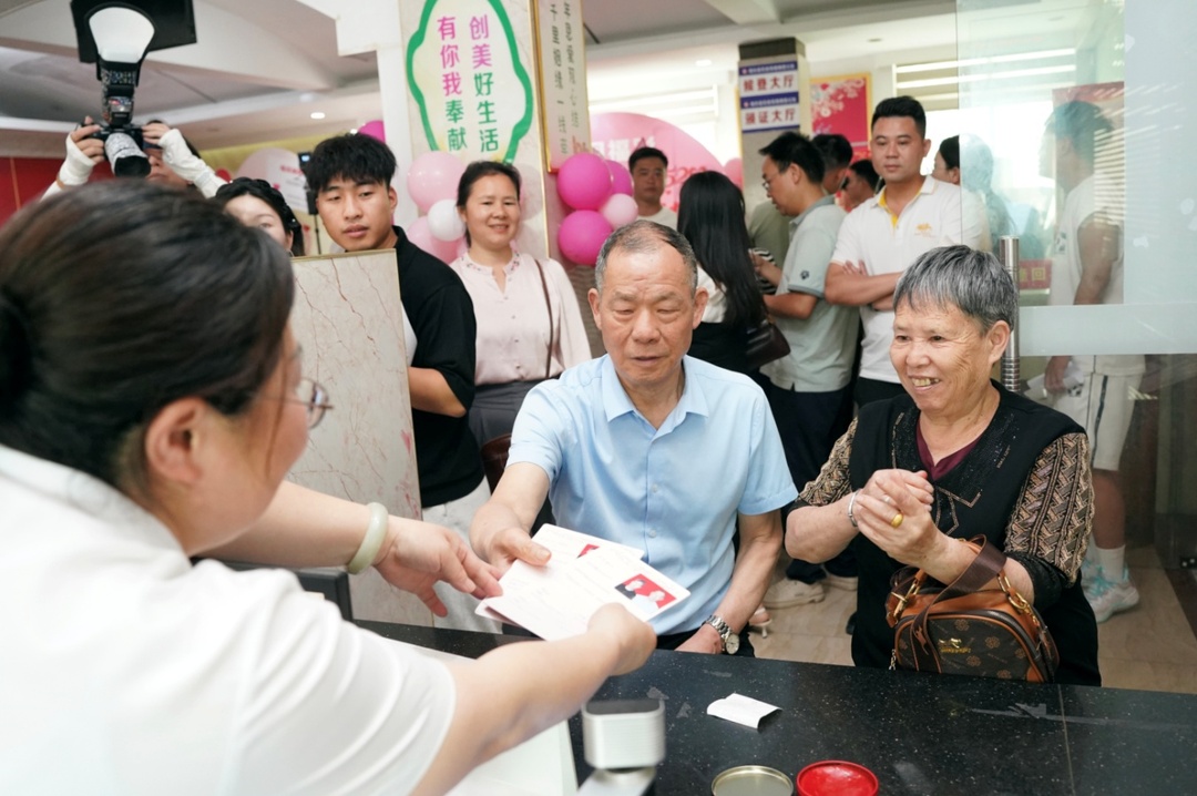 当天,一对金婚夫妇补领了结婚证,他们讲述了“一纸婚书、半生相守”的故事,诠释了“责任比彩礼更珍贵,家风比排场更长久”的婚姻真谛。